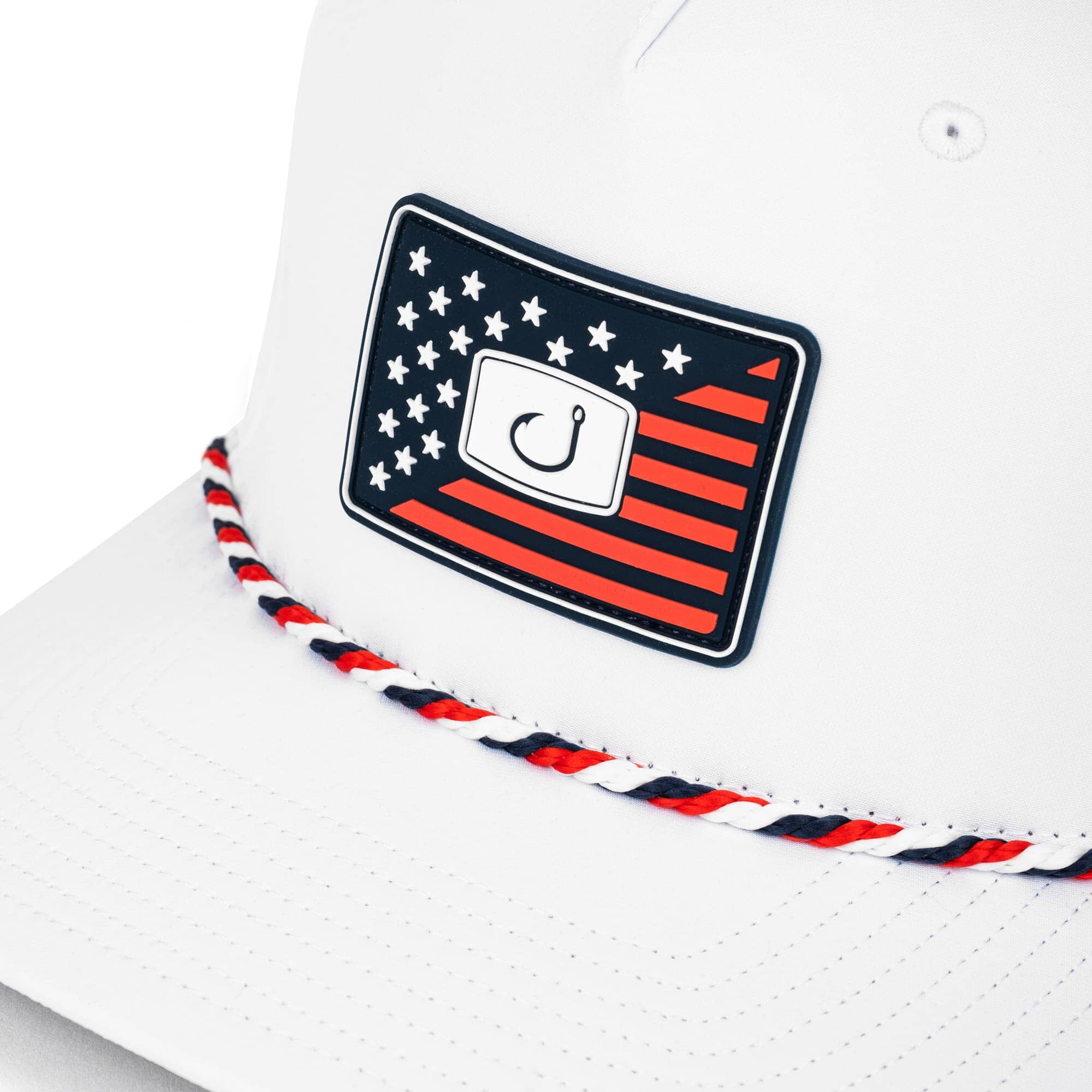 Designed with a purpose, the Patriot Performance Hat is built with serious anglers in mind. A tried and true 5-panel design is combined with our AVIDry Lite Performance Fabric and laser cut vents for maximum breathability and comfort. The Black under-visor reduces glare while the snapback and mid crown profile make for an exceptional fit that's great for all head sizes and sure to be your go-to for long days on the water.